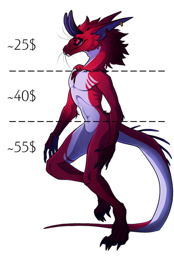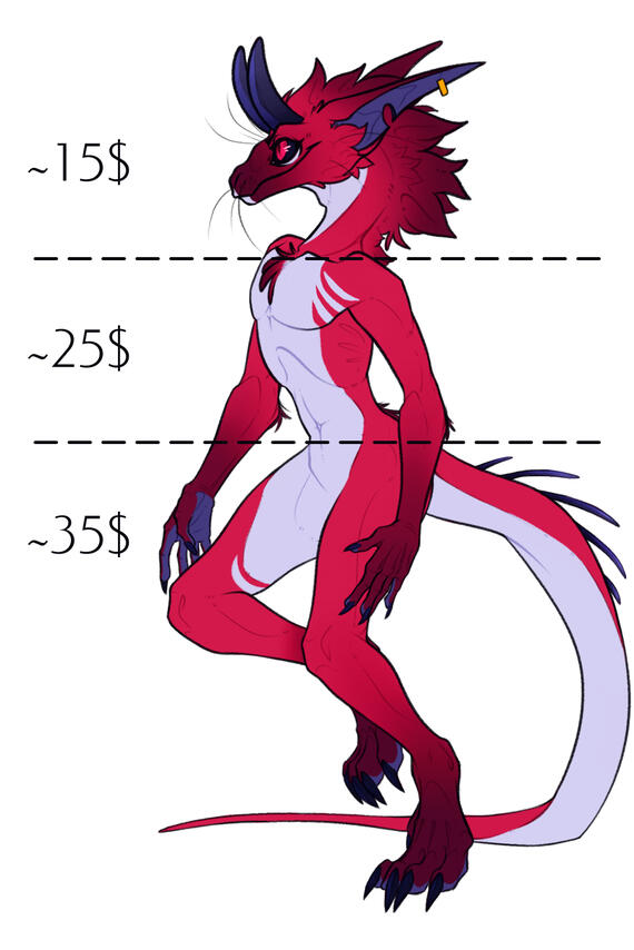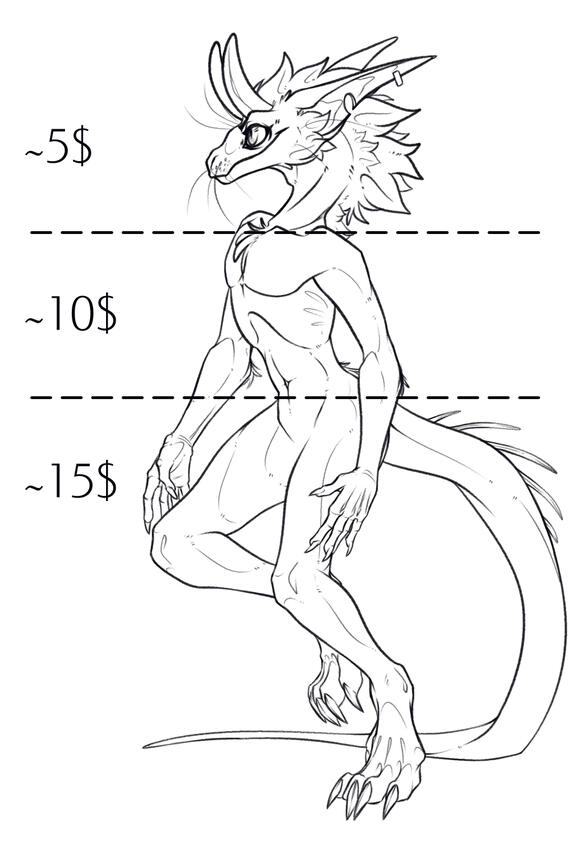 Will draw: furries, dragons, dinosaurs, lizards, monsters, animals; mature content (violence, nudity, gore, etc).